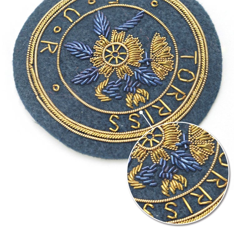 印度絲繡花章,早起源于印度,故又稱印度絲徽章、銅絲徽章、彈簧絲徽章、印度繡花章、金屬刺繡章等,采用印度特有的金屬線為主要材料,并用傳統(tǒng)的手工藝繡花,一針一線刺繡而成。其手工精細,令人嘆為觀止,繡出來的產(chǎn)品高檔華麗,層次分明。
